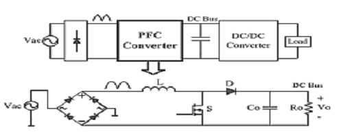 PFC電路的目的是確保流向下游開關(guān)調(diào)節(jié)器的電流類似于正弦波。PFC電路在整流器的輸出端使用一個電感器,以抑制開關(guān)調(diào)節(jié)器吸收的任何電流。當(dāng)電流突發(fā)流過PFC級的輸出時,電感器會產(chǎn)生反電動勢,這會減慢到達(dá)穩(wěn)壓器級輸入的電流上升。典型的拓?fù)淙缦滤荆?/span>