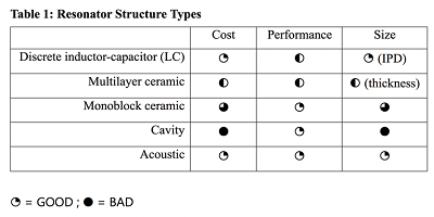 那么,什么是諧振器?各種潛在的共振結(jié)構(gòu)被用來產(chǎn)生用于不同應(yīng)用的濾波器(表1。